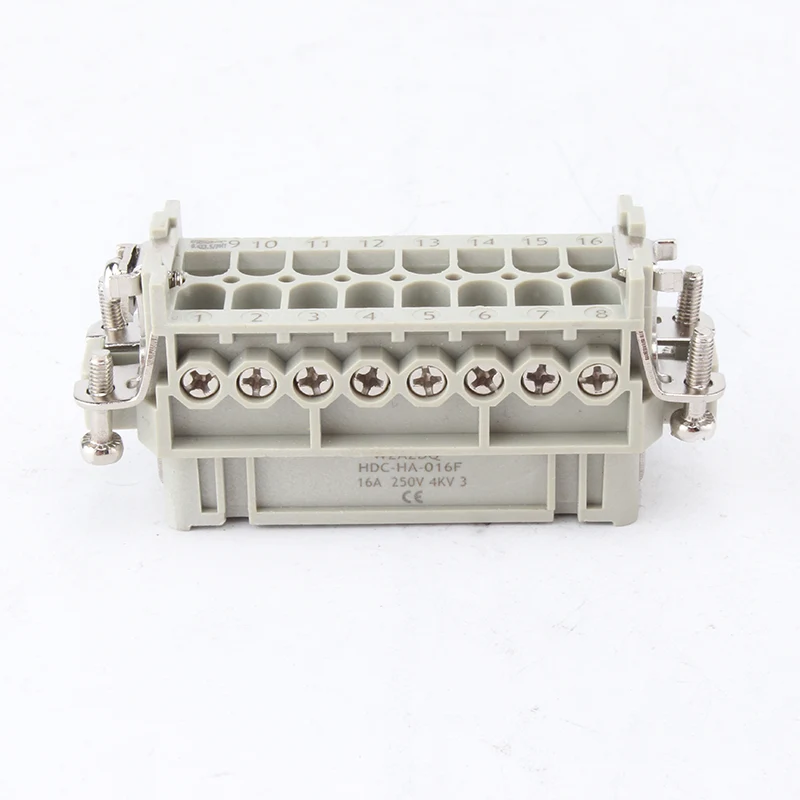 16A 10-pinners tunge innsatser er inerte hunn- og hanndeler. HA-016-M og HA-016-F er mannlige og kvinnelige del, de er matchet hverandre som et sett. De jobber sammen med aluminiumshus av H16A. Innsatskomponentene og det ytre huset utgjør sammen et komplett koblingsprodukt. De er laget av PC-skall og messingpinner med sølvbelagt. Sølvbelagte pinner gjør det godt elektriske tilkoblinger.