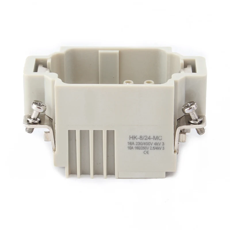80A 4 Pin Insert Heavy Duty Connector er 80A høystrømsapplikasjon. Den støtter 4+PE strømforsyningskonfigurasjon (inkludert beskyttende jording). Den er fuktsikker, flammehemmende (UL94 V-0). Den er også IP65-grad. Den er kompatibel med 16B-skap, med en modulær design for enkel utvidelse. Den kan også settes sammen som 4-pinners pluss 2-pinners. De er laget av PC- og messingpinner.