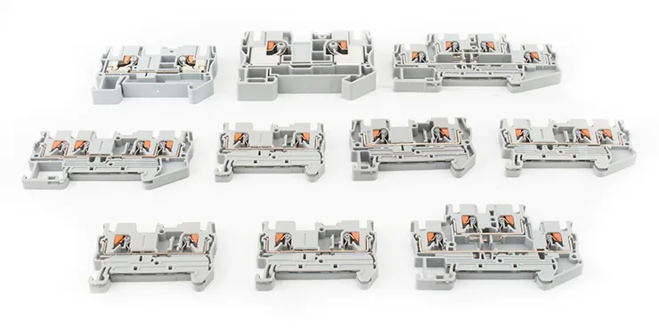 Feed through din rail terminalblokk (PT-serien) er konstruert for høyvolum, moderne installasjoner der ledningshastighet, arbeidskostnad og langsiktig pålitelighet er avgjørende. De utmerker seg i standard industri- og bygningsmiljøer. Feed through push in din rail terminalblokk brukes i masseproduserte industrielle kontrollpaneler og skap, bygningsautomasjon og HVAC-systemer, kommersiell apparatproduksjon, og så videre.