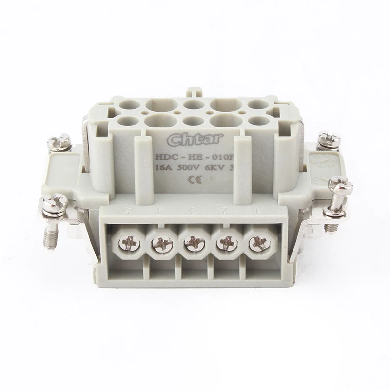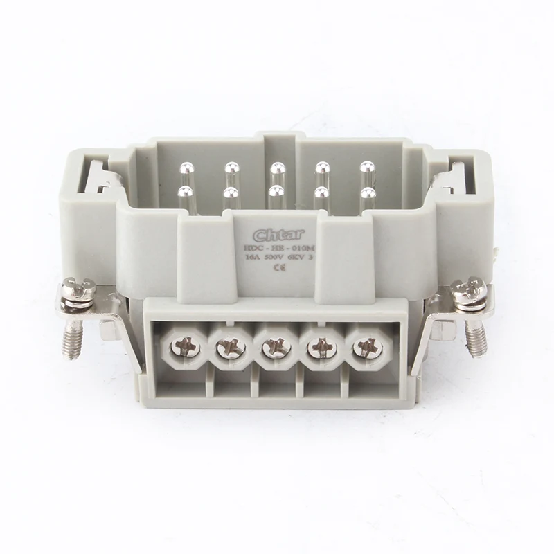 CHTARs holdbare M/F 10 Pin Insert Heavy Duty Connector brukes sammen med H10B-huset til den kraftige kontakten. Den har 10 pinner og er koblet sammen med 10 ledninger. De er laget av høystyrke PC og har messing sølvbelagte pinner inni. Vi ser frem til å bli din pålitelige langsiktige partner i Kina.