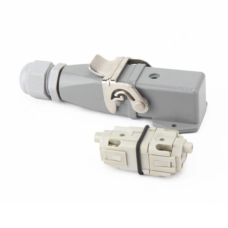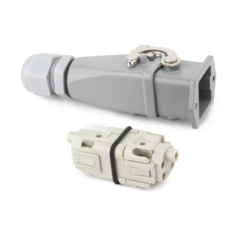 Den er fungert med 10A H3A-MTG Housing heavy duty-kontakt. M HA 4 Pin Insert Heavy Duty Connector er laget av sterkt PC-materiale og messing sølvbelagt .Pinnene våre er belagt med sølv, meget god kvalitet og mye bedre elektrisk ledningsevne. Den er satt sammen med tetningsgummi for å gjøre den bedre vanntett.