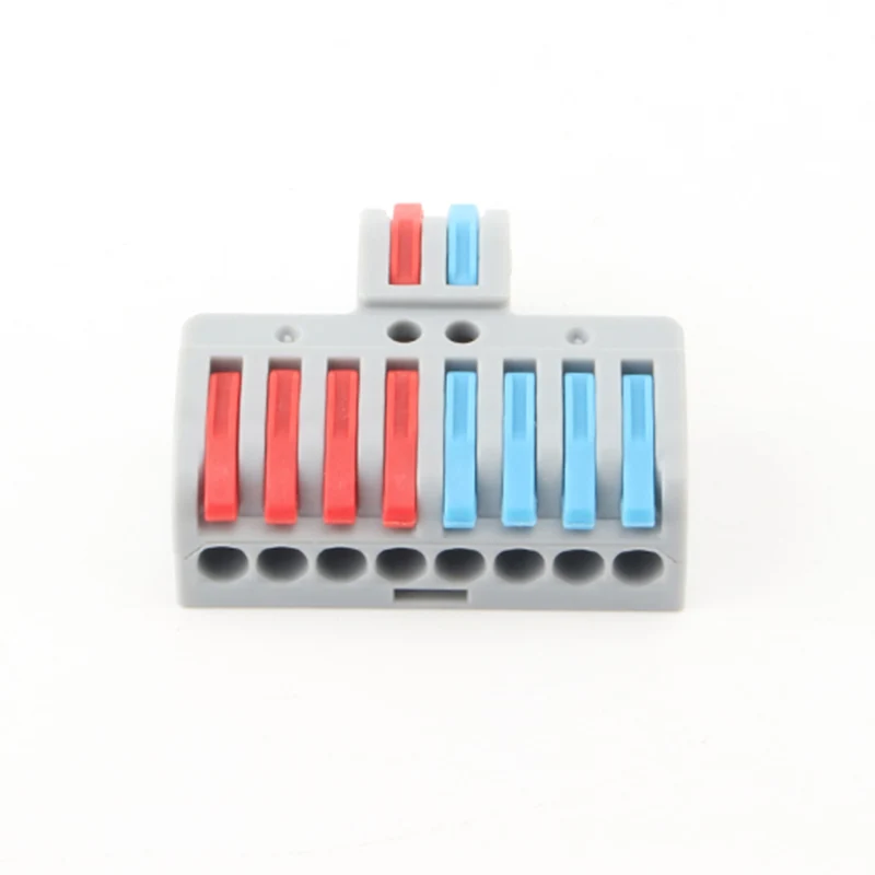 Denne CHTAR høykvalitets Multi-in Multi Out skjøtetråd hurtigkoblinger er en kontakt med en multi-in og multi-out struktur. Den kobler sammen ledninger fra 0,2 mm² til 4 mm². Den kan fungere med en merkestrøm på 32A. Denne serien av produkter realiserer tilkoblingsmetoden for multi-line grener innenfor et område på 4 kvadratmillimeter. Implementer ulike grenstrukturer som 1 delt inn i 2, 2 delt inn i 4 og 3 delt inn i 6. Hver gruppe av linjer er ikke koblet til hverandre.